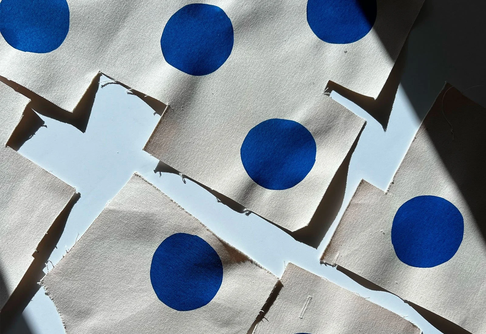 Textile - pattern design “DOT” Polka Do Photo credit Sohyun Lee Process: Silk screen on reclaimed canvas
